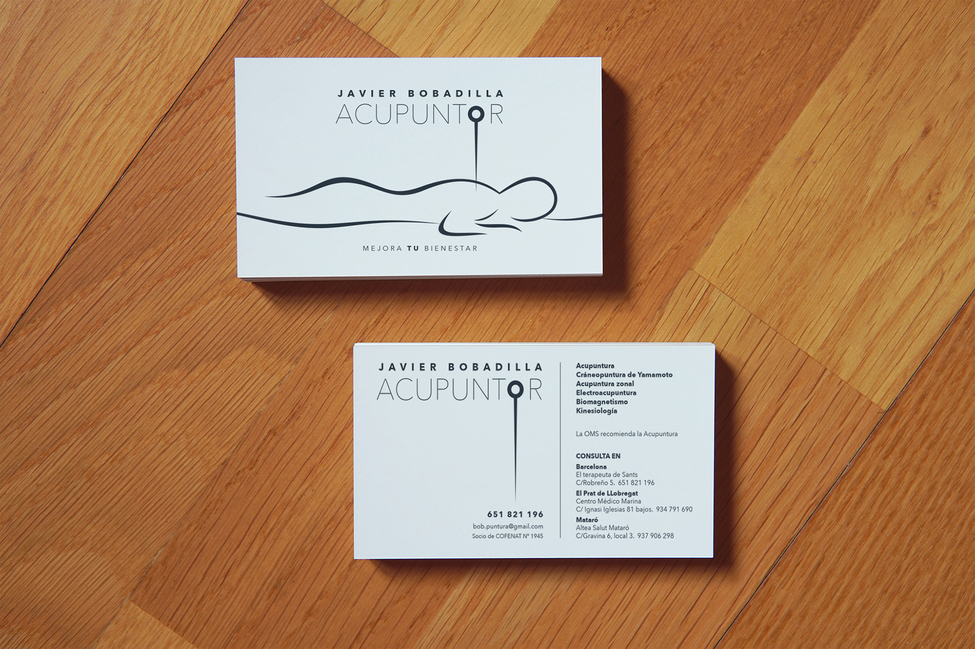 Disseny imatge corporativa i papereria per Javier Bobadilla, especialista en acupuntura.