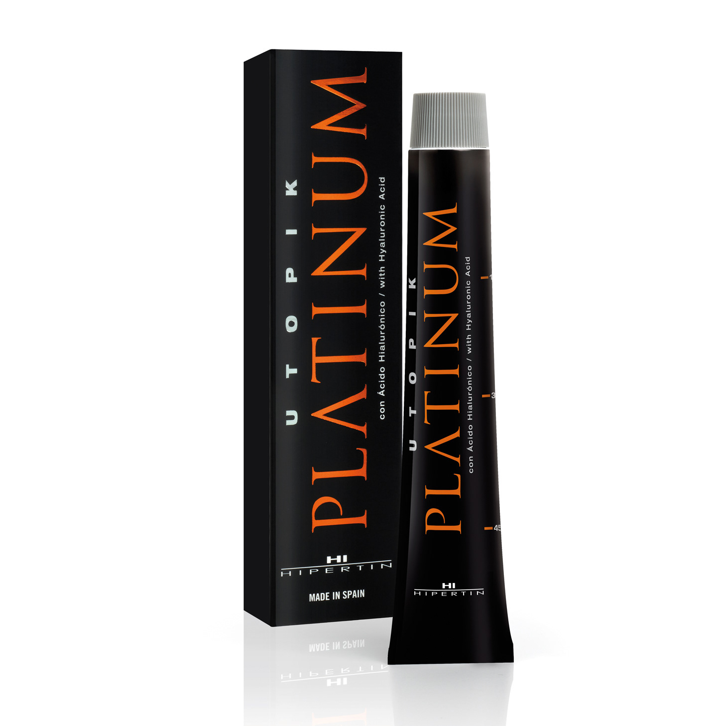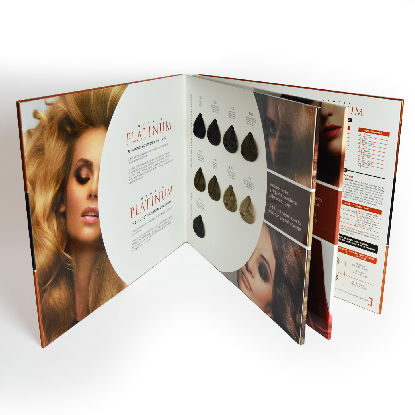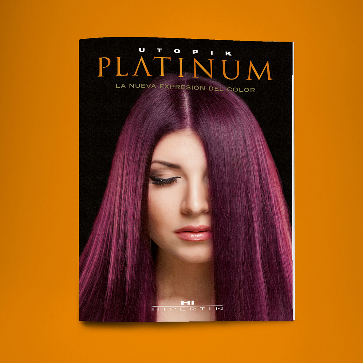 Disseny d’imatge corporativa, packaging, carta de colors i tríptic per UTOPIK PLATINUM de la marca de cosmètica capil·lar HIPERTIN.